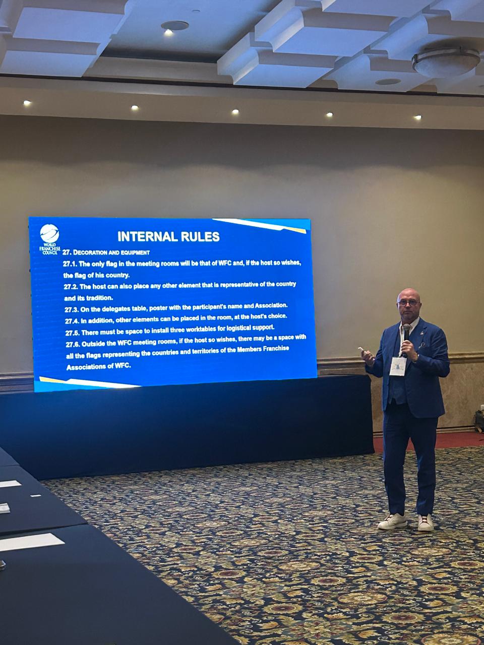 Nesta Assembleia Geral foi aprovada por unanimidade a proposta apresentada pelo Dr. Cavaleiro Machado do Regulamento Interno do WFC.